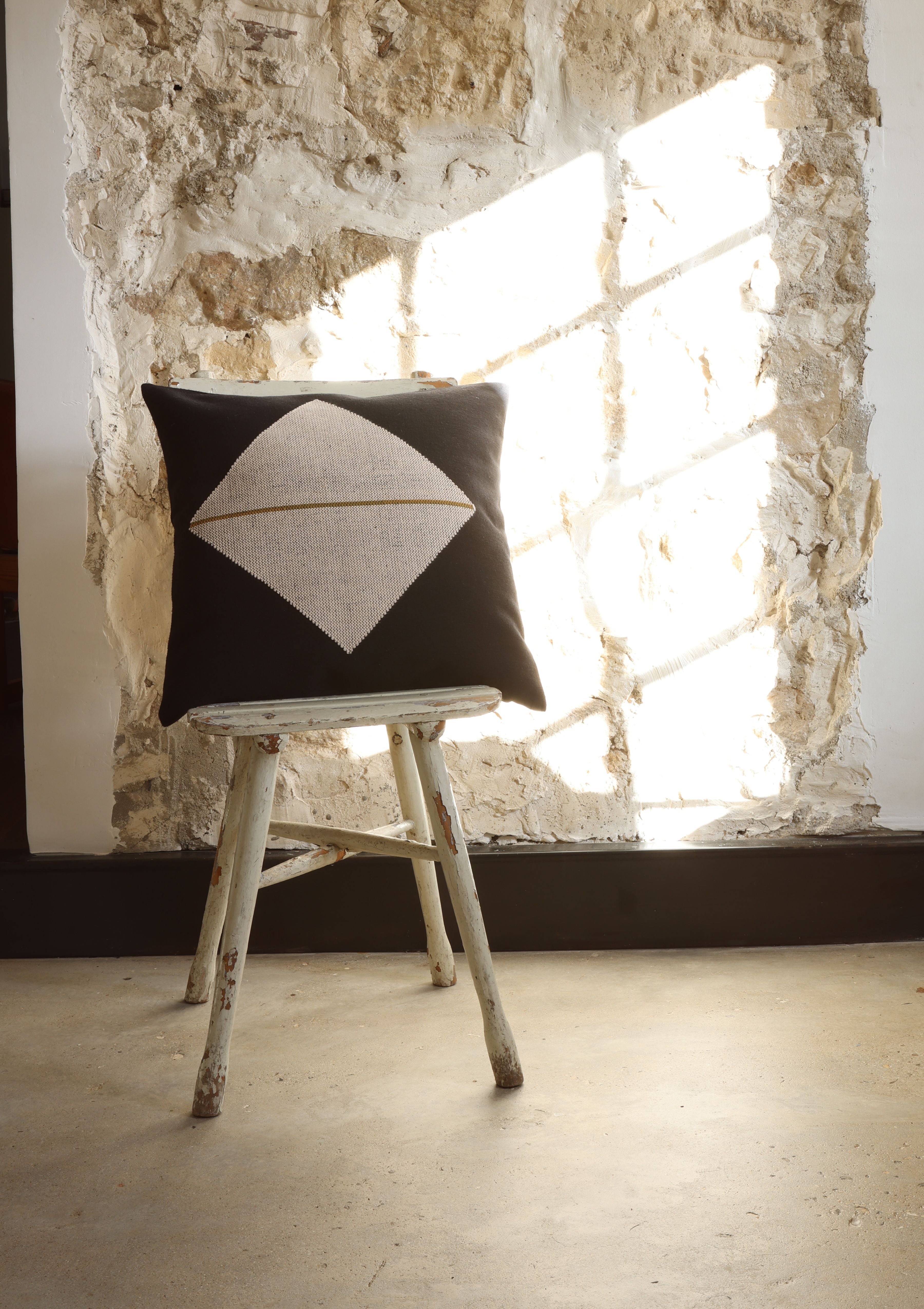 Origami Throw Pillow in Organic Cotton, Black with Off-White