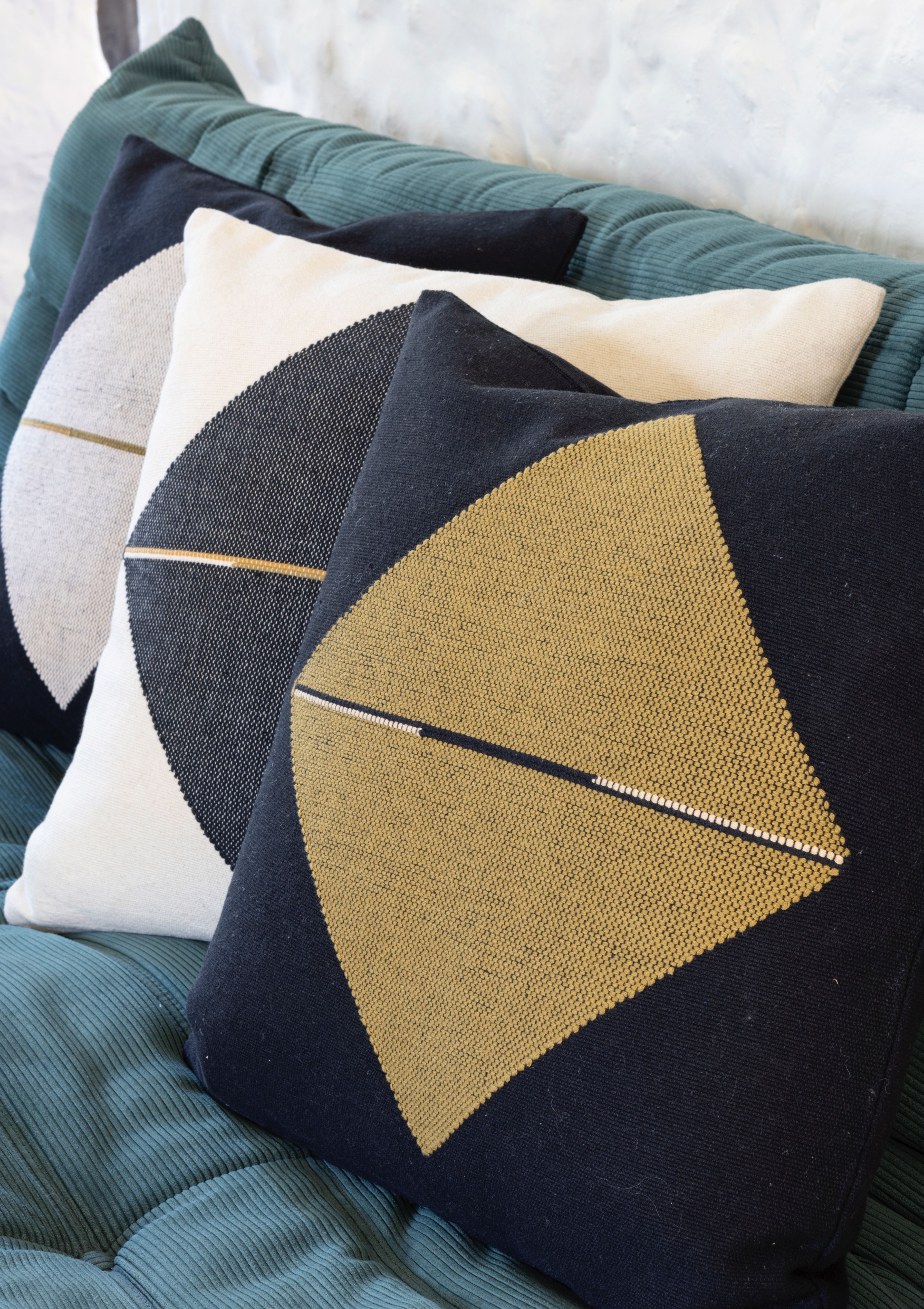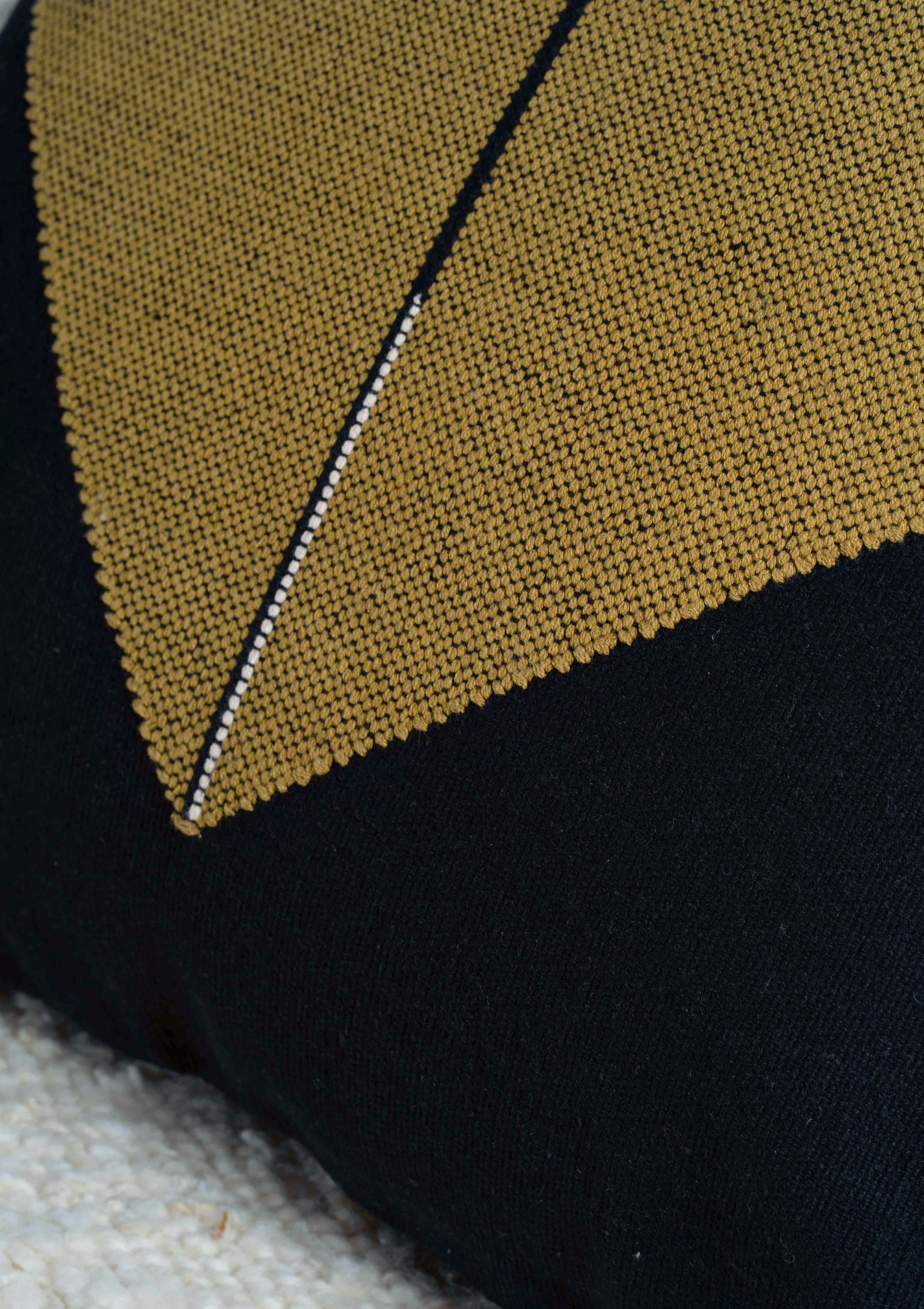 Origami Throw Pillow in Organic Cotton: Black with Mekong,