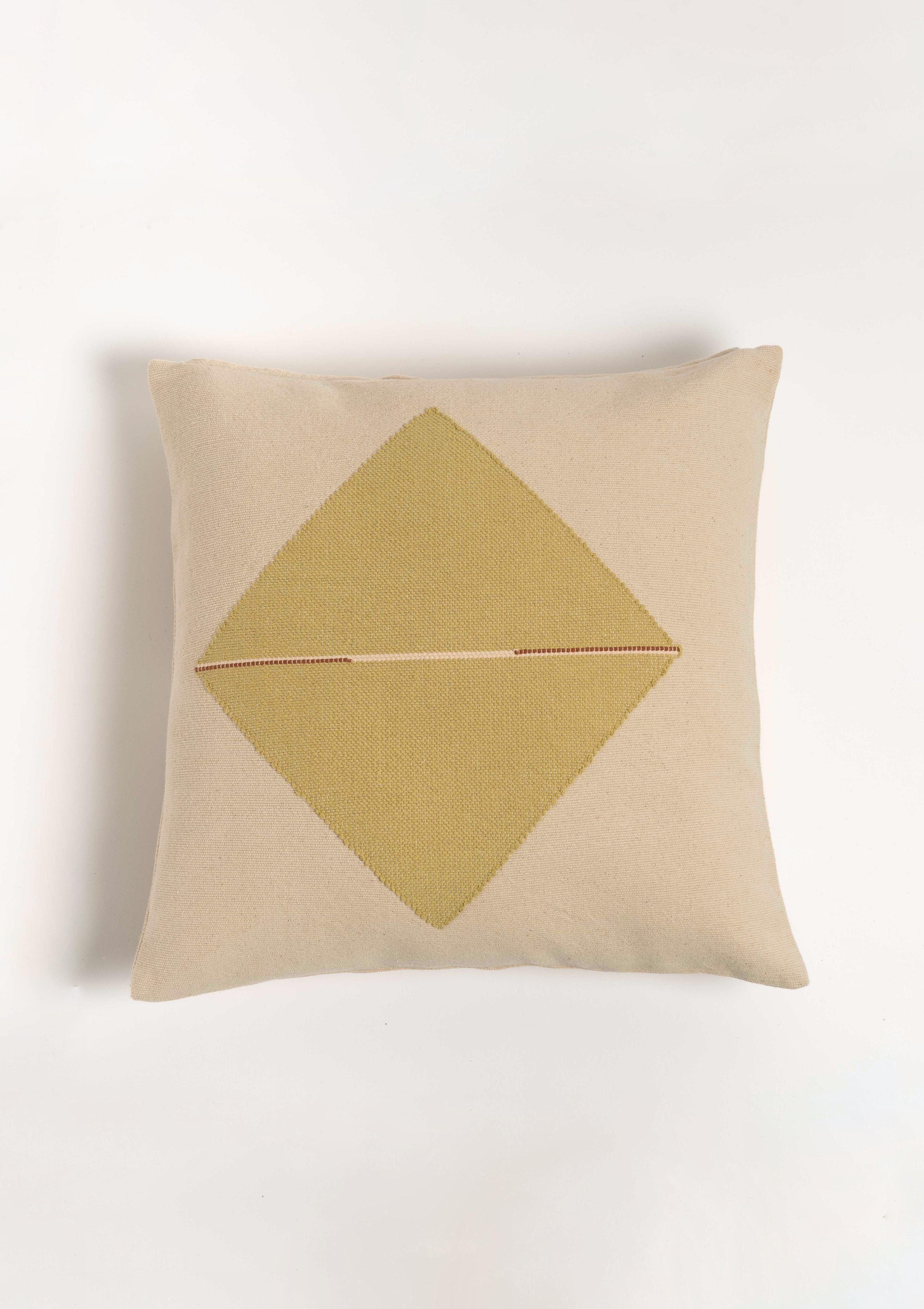 Origami Throw Pillow in Organic Cotton, Natural with Olive