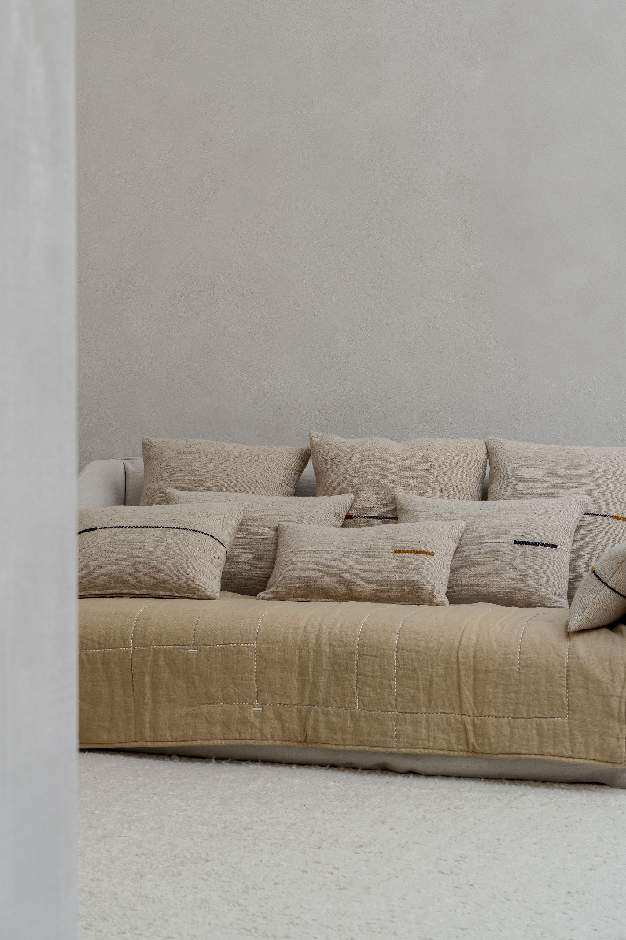 Handmade natural fiber cushion with an ocher line detail This natural fiber cushion embodies a perfect blend of contemporary elegance... Read more